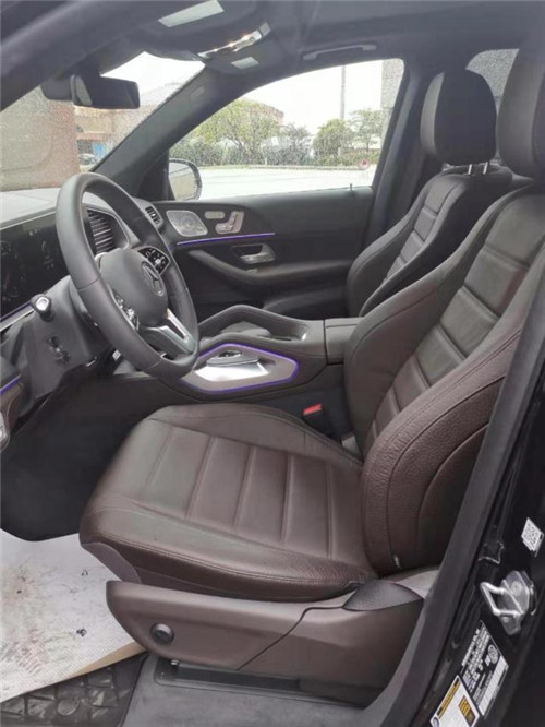 GLE350内饰首先映入眼帘的是它那真皮包裹的三幅式多功能方向盘,握感舒适细腻。双12.3 英寸高清显示屏,将仪表盘和多媒体屏合二为一,功能显示一目了然,满满的科技感。四个圆角矩形空调出风口整齐排列,下方布置了常用的物理按键。(更多优惠详情文章底部电话及微信咨询)