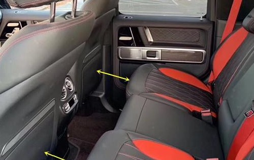 2019款奔驰G63后座椅缝线和配色与前排保持一致,较长的坐垫对大腿的支撑更好,在宽度和高度上保留了老款的优势,对腿部空间也有所加大,靠背角度调节功能的加入值得肯定,长时间乘坐放缓靠背,可以更好的休息。