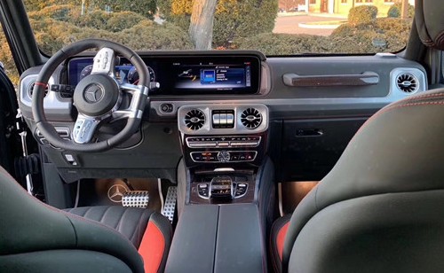 2019款奔驰G63黑红搭配的座椅,运动氛围更强,相较于老款G63,座椅在舒适性、支撑性以及功能性上都有了很大的提升。座椅带有多项调节,集中在门板处,而腰部支撑和侧支撑也支持多级调节,但需要通过COMAND旋钮在屏幕中调节。