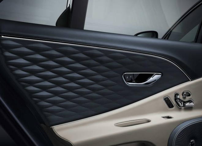 内饰部分,全新一代飞驰采用最新的飞翼式家族设计风格。新车内饰采用双色皮革包裹,搭配做工精细的金属饰条和双色实木饰板,进一步体现了它的奢华感。此外,全新一代飞驰可选配“Mulliner驾驶套件”(Mulliner Driving Specification),其中宾利针对真皮门板饰面首次引入的立体菱形真皮内饰设计,在没有缝线的基础上通过皮革起伏呈现出层次感。同时新车还在各种旋钮处及出风口装饰等处采用了类钻石贴片饰面,根据宾利官方的描述,这样的贴片全车最多可以达到5331个。宾利独创的的三面翻转式的中控触摸屏也出现在了全新一代飞驰上,其中中控屏尺寸为12.3英寸,车机系统UI经过优化后将包含更多的功能,包括Apple CarPlay等。