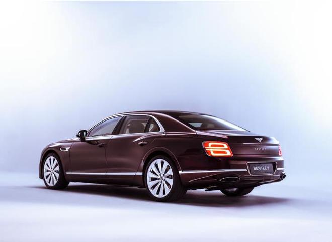 侧面来看,新车保留了经典的大型四门轿车风格,同时为了追求整体的运动感,新车的整条腰线设计呼应了1959款宾利S2 Continental Flying Spur的设计,使得侧面看来肌肉感更强。尾部来看,新车最大的特点来自于B型LED尾灯,具有非常高的辨识度。尺寸方面,官方介绍全新一代飞驰基本保持了老款车型的长度,但轴距增加130mm,并配备有全新风格的22寸轮圈。