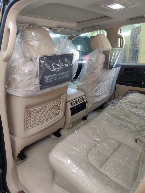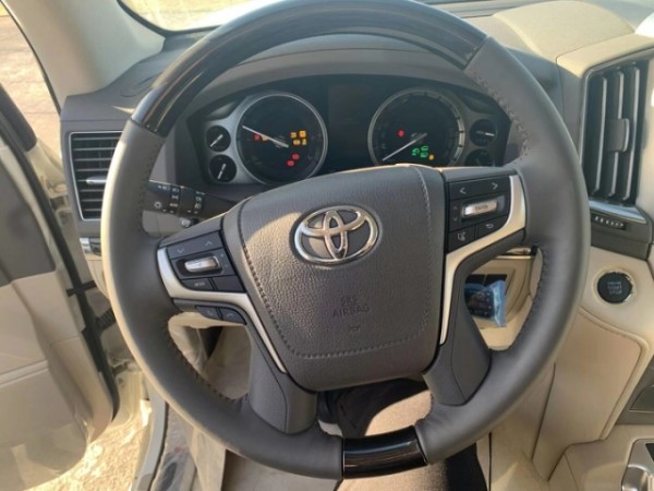 19款丰田兰德酷路泽4600GXR中东版V8硬派全能越野车 内饰尽显豪华质感: 丰田酷路泽4600中东版整个操控区域色调为深色系,仪表盘、方向盘和排挡等位置均配以桃木装点,尽显豪华质感。不但具有DVD导航,这款车的倒车影像还可以显示在内后视镜上;中央扶手箱还装备了冷藏箱,这些都与中规版车型有所不同。丰田兰德酷路泽5700在中控台的面板换成与内饰新色系更搭的黑色钢琴烤漆材质真皮座椅与桃木内饰的搭配使整个车内更显高贵。
