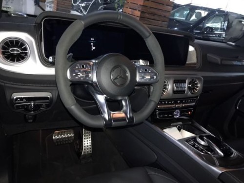 2019款全新G63内饰方面,新G63保留了新G500的整体设计,除配色差异外,新车还换装了全新造型的平底式AMG运动方向盘,其两侧配以打孔皮质包裹,下部镀铬装饰的造型也与新G 500明显不同,看上去十分战斗。此外,全液晶仪表盘+中控大屏的双12.3英寸屏幕设计在新车上也没有缺席,营造出了浓郁的科技感。