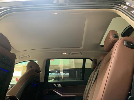 宝马X7 (配置|询价)采用宝马全新家族设计,双肾的进气格栅面积相当庞大,细长的大灯组采用开眼角的设计,使新车横向视觉感受更宽。新车灯组内部布局精致,配备了矩阵式激光大灯,点亮后效果可佳。新车在前杠下方的设计格外有气势,配上镀铬条的融入,显得新车有着十足的豪华感。