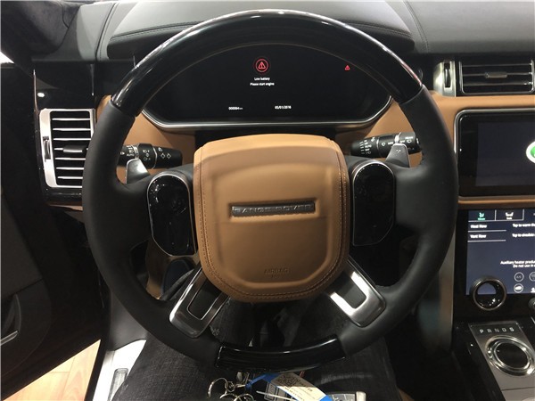19款路虎揽胜行政方向盘也非常的现代,实木与真皮的材质,也让奢华感升温不少,上面有音响,蓝牙的控制区和自适应巡航,方向盘加热控制区,操作非常方便。内饰均采用精心设计及精湛工艺,并选用最为顶级的皮革及材质,仪表板、手套箱盖、中央通风口四周、车门内饰板和方向盘后均采用全真皮包裹,甚至驾驶者的膝部气囊的外层也同样采用了真皮装饰。