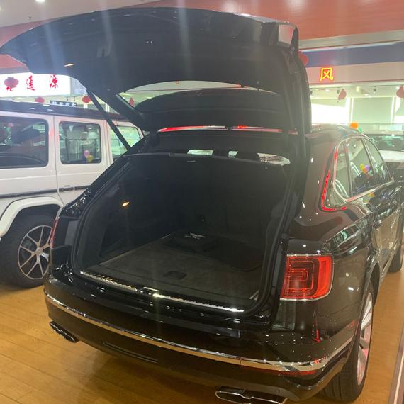 2019款美规版宾利添越汽油4.0 V8 鲸鱼黑/黑 配置:百年礼赞套件包(车前的宾利徽标,车内的宾利徽标轮毂中央徽标饰,方向盘徽标饰,档把徽标饰,车钥匙徽标饰都以百年典藏金配色,座椅刺绣宾利徽章-金标)