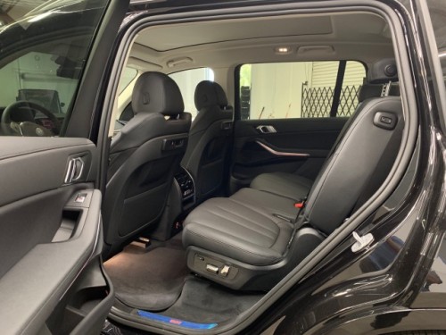 宝马X7一条腰线从车头贯穿至车尾,使车身侧面看上去十分修长。车窗四周采用当下较为流行的镀铬条进行点缀,显得格外时尚。大尺寸多条幅轮毂的设计充满了运动气息,配上车门下方的踏板,显得十分有气势。车身尺寸方面,宝马X7的长宽高分别为5151/2000/1805mm,轴距为3105mm