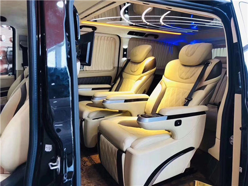 进口奔驰V250 商务车改装改装高顶隔断7座商务车后舱前为两个独立航空座椅,第二排座椅安装进口首席航空座椅,加热通风按摩功能齐全,最大限度的减缓您的乘车疲惫。八向电动调节:电动头枕,电动腿托,前后电动调节,电动靠背调节。