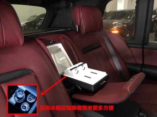 后排中央固定扶手可容纳带有威士忌、香槟酒具的酒柜和冷藏箱。专为幻影 (配置|询价)长轴距版车型打造的“静享座椅”,座椅间固定的中央扶手台设有存放定制香槟酒具的酒柜和冷藏箱,电子控制的座椅角度,并带有按摩功能及座椅扶手加热功能。腿部支撑可电动伸展90°,为后排乘客带来极致舒适的体验。