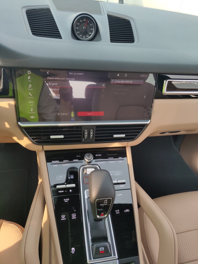 19款全新一代保时捷Cayenne (配置|询价)采用三幅式多功能方向盘,加上换挡拨盘显得格外运动。12.3英寸高清触摸屏的设计凸显车内的科技感,排挡杆采用电子排挡方式,四周的控制面板采用触摸屏设计,触摸时按键还有声音和震动的回馈,整体十分豪华。中控台上方的圆形表盘,是保时捷家族的经典设计