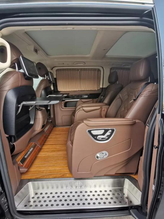 奔驰V260L改装后排的座椅被设计成可以电动放平成一张双人床。这样的实用性设计确实增色不少,也使得奔驰V260L缇香版同样适用于家用,毕竟,能在旅途劳累的时候有张柔软舒适的床稍事休息,对于每个人来说都是件很幸福的事情