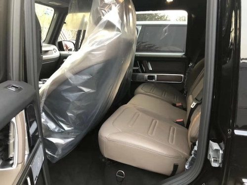 19款奔驰G500内饰豪华气派,卓越的品质和精致的工艺在车内体现得淋漓尽致,对细节的精益求精是内饰设计中的重要原则。车内采用深色调与桃木装饰,黑色真皮运动座椅非常舒适,方向盘以高档真皮包裹装饰,触感极其细腻。配有桃木装饰的操控台,稳重大气,同时提高了整体的质感。各种功能按钮应有尽有,丝毫不次于豪华轿车的功能。 内饰焕然一新,虽然还是以平直的线条为主,但完全没 了上一代车型那种粗糙的感觉了,用料和做工都能令人满意。跟奔驰的很多其他车型一样,它也用上了双12.3英寸屏幕,科技感很强。三把差速锁按键依旧布置在中控台的正中间,这是奔驰G级的灵魂所在。