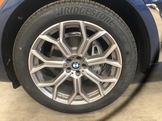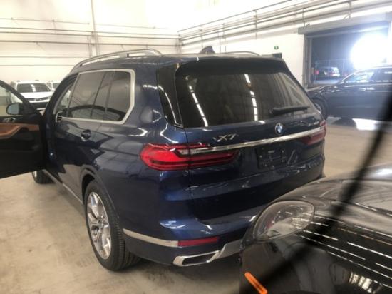 2019款美规宝马X7 (配置|询价) 3.0T运用最新家族式设计语言,前脸配备面积更大的双肾式主动进气格栅,两侧“天使眼”头灯组造型更为修长,且采用开眼角设计,保险杠中部为贯穿式进气口,并辅以银色饰条加以装饰。车身侧面腰线由前翼子板贯穿至车尾,选用22英寸多辐式铝合金轮毂。车尾造型方正,银色饰条贯穿其尾灯组,且灯组内部集成“C”形灯带,点亮后效果出众,排气为双边两出式布局。