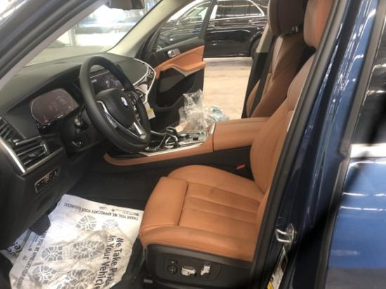 19款美规宝马X7 3.0T 7融入最新家族式设计元素,内饰大部分区域由银色饰条及木质面板加以点缀,配备带有注意力监测的液晶仪表盘及全新的三辐式多功能方向盘,中控区域为悬浮式触控显示屏,下方为空调出风口与实体功能按键,杯架处还加入可为饮品制冷或加热的功能,换装全新的水晶电子档把。除此之外,新车还配备了Vernasca皮革内饰,四区气候控制系统及三段式全景天窗。