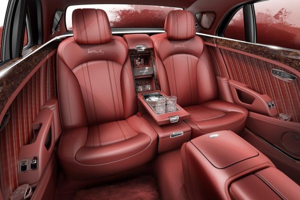 宾利慕尚加长限量版,腿部空间大幅增加 慕尚轴距的加长(从 3266 毫米增加到 3516 毫米)将后座乘客的乘坐舒适性提升至新高度。轴距的加长大幅增加了腿部空间和座舱空间,使慕尚长轴距版成为宾利旗舰车型的新丰碑。奢华内饰为充分利用额外的后排空间,宾利研发了航空式电子腿托,集成在两个后排座椅的基座上。腿托可以向外延伸和转动,为后排乘客提供正坐、放松、仰坐等不同坐姿。