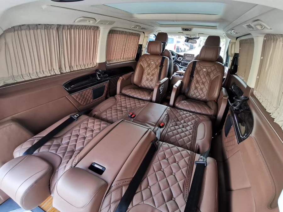奔驰V260L改装高顶隔断7座商务车第二排座椅安装进口首席航空座椅,加热通风按摩功能齐全,最大限度的减缓您的乘车疲惫。奔驰V260L改装无高顶无隔断7座商务车6向电动调节:电动腿托,前后电动调节,电动靠背调节。