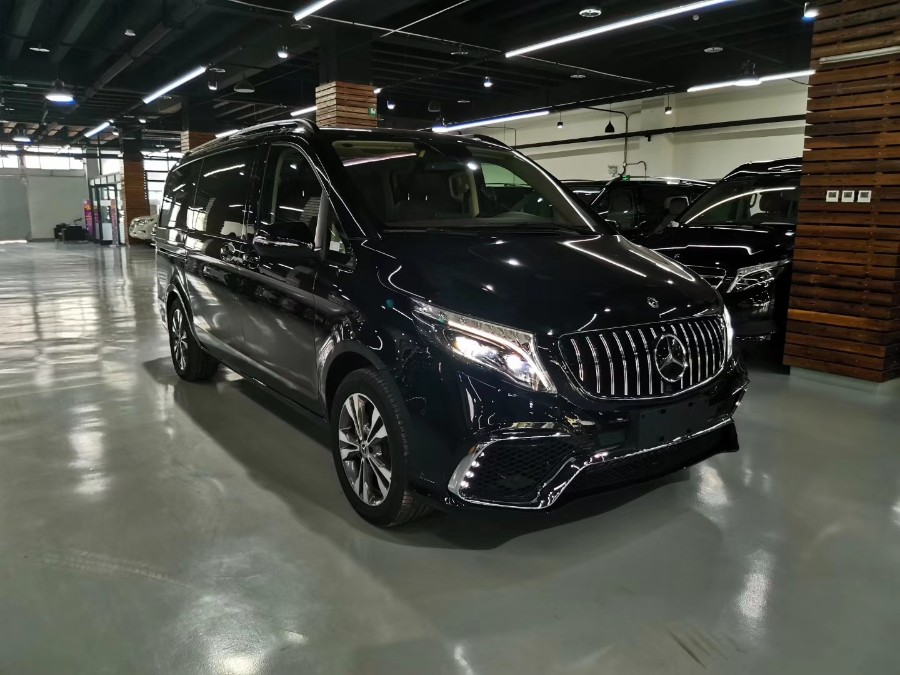 奔驰V260L平顶7座改装商务车,奔驰V级 (配置|询价)奔驰V260L商务车充满动感的前脸设计、炯炯有神的LED前车灯、奔驰V260L商务车镀铬进气格栅内嵌梅赛德斯-奔驰星徽标。奔驰V260L改装7座商务车保姆车圆柱镀铬条装饰的进气格栅十分比较精致,奔驰V260L改装车漆比较有质感,前脸线条丰富,棱角分明。
