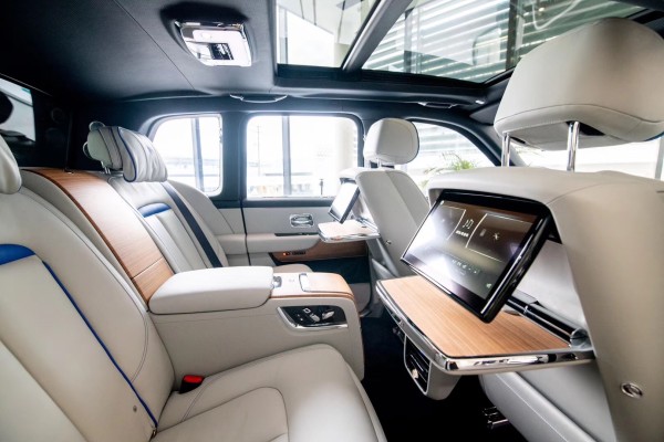 劳斯莱斯库里南的后部存储空间相当充裕。行李厢空间达560升,如果把行李厢和后排座椅之间的隐私分隔屏收起,储物空间可达600升。另外,由于后排座椅底座设计高于行李厢地板,即使两个座椅均下折,行李厢中的物品也会被完好固定而不会向前滑落,这一点与其他品SUV的设计有着本质区别。如放置长形物品,仅需将行李厢地板一键抬升至与座椅底座齐平,便可实现长2245毫米、面积1930升的超大储物空间,让物品在宽敞空间自如安放。