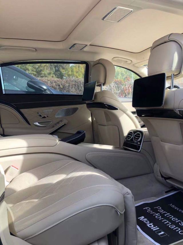 2019款迈巴赫S560 宝石红/米 私人订制高级金属漆 迈巴赫头枕 四驱 皮木双拼内饰 全景天窗 电吸门 导航 并道辅助 变道辅助 主动盲点辅助 自动夜视辅助系统 面板加热 前排座椅加热、通风、按摩带座椅记忆 后排座椅加热、通风、带座椅记忆 桃木方向盘 柏林之声音响 nappa菱形座椅 雷达测距 抬头显示 360环影 智能卡 倒车影像 前后电眼 行政四座 自动led头灯 20寸轮毂 后排娱乐 后排小桌板 前后排手机无线充电 后排独立空调 后排化妆镜 后排冷热杯架 中控石英表 香氛系统 多色氛围灯 底盘升降 7.1之前手续齐