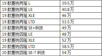 2020款墨西哥版 塞纳两驱XLE 真皮版,颜色齐全配置:电动天窗,七座,18寸轮毂,电动门,智能卡一键启动,7寸触摸导航屏,后电眼,倒影,多功能方向盘,原厂真皮座椅,前座椅加热,主驾驶8向电动调节及腰部支撑,副驾驶4向电动调节,二排座椅腿托,三排手动座椅,电尾门,定速巡航,前雾灯,行李架,镀铬门把手,遮阳帘,隐私玻璃,备胎