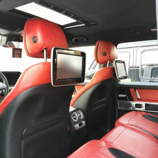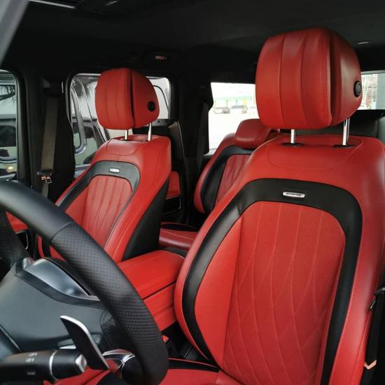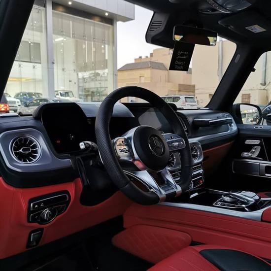 奔驰G63与前代车型相比,标配新式仪表盘和最先进的COMAND APS NTG 4.5驾驶室管理和数据系统。还配备了带彩色TFT显示屏的AMG表盘、AMG主菜单和单独的挡位显示器以及采用白色照明的AMG门槛。全新进口奔驰G63AMG采用了全黑的内饰配色,间中点缀的银色镀铬装饰显得相当精致。奔驰G63AMG精选皮革搭配多疤胡桃木木饰的装饰风格彰显了顶级经典越野车的风采。奔驰G63AMG进口SUV豪车内饰设计更具时代感也更加豪华。新款G63AMG独立的液晶显示屏如同奔驰A等新车型一样,被立在中控台上方,这样更加方便阅读信息。大多数奔驰的电子系统都出现在这个全新的豪华内厢里,包括COMAND和HD卫星导航系统