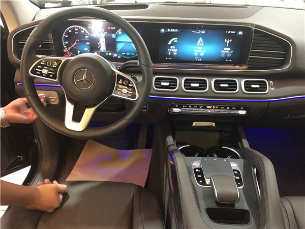 2020款的奔驰GLE450内饰方面,则延续了现款S级 (配置|询价)的造型,用的是贯穿式中控台双屏设计,12.3英寸的双液晶显示屏带来的科技感爆强,并且搭载 了奔驰最新的MBUX人机交互系统,采用搪塑,皮革,实木,金属和碳纤维材质,三幅式平底方向盘动感十足,头顶一个全景天窗,座椅用的是双色搭配的运动风格座椅,舒适性和包裹性也比较好。
