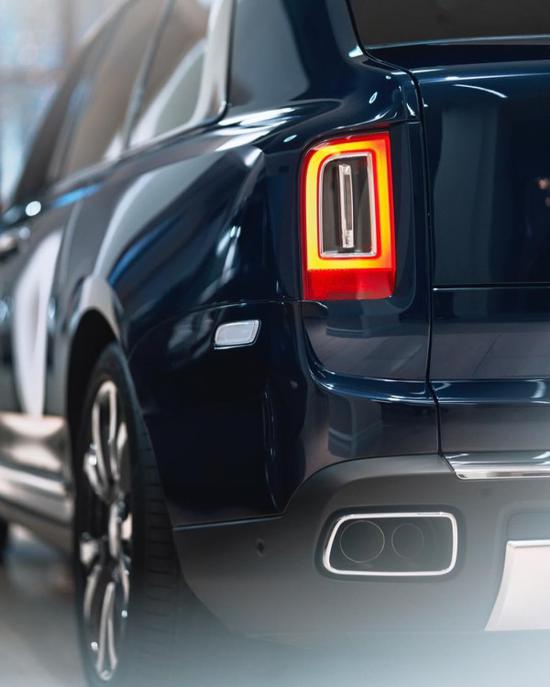 车身侧面从B柱开始,车顶线条就十分流畅,至后风挡时线条走速更快并迅速下落,让行李厢盖都显示出优雅的样子,这一侧面设计是向上世纪三十年代劳斯莱斯汽车设计致敬。据悉新车的整体尺寸为长宽高5341×2164×1836mm,轴距3295mm,整体远大于宾利添越与路虎揽胜 (配置|询价)长轴距版。