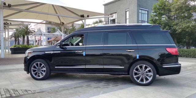 19款领航员的前脸首次采用了林肯家族全新的设计语言,星辉式前格栅搭配王冠式LED自适应前大灯,大气稳重。大灯的造型、车窗的轮廓、车顶的线条、车侧的腰线、甚至车身上的镀铬饰条,都是以“平直”为基准,方正间更显霸气。车窗与车身的比例呈现最佳的视觉效果,配合22英寸的大尺寸车轮,身材的“庞大”不会给人笨重的感觉。我们这次体验的是总统系列的全新领航员,风火轮造型的轮圈与Navigator概念车保持了同款。