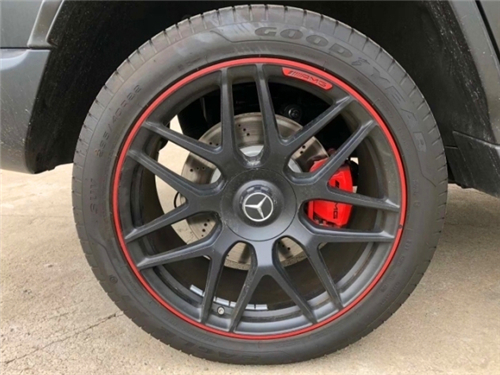 此外,新AMG G63最大的轮圈尺寸提供22英寸可选,进一步提升了它外观造型的彪悍程度。展车不仅采用了全新的车身涂装,还搭配了红色的轮圈装饰,更加个性。