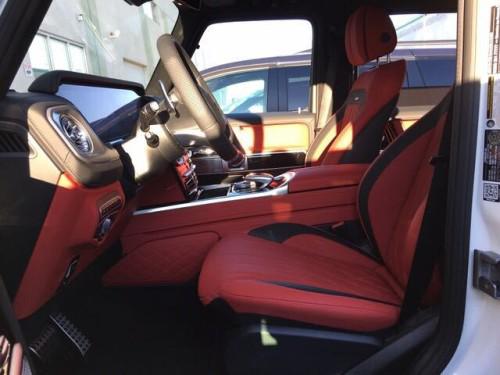 外观方面:奔驰G550车头部份特别换上了碳纤维材质的单横栅式水箱护罩,并在两侧进气孔下方则追加了LED昼型灯,展现出更为华丽的车头造型。而引擎盖上 方追加了大面积轻量化碳纤维材质组件,并在两侧追加了同为碳纤材质的空力套件,搭配车身大型轮拱同样碳纤维材质的设定,并刻意透出半截碳纤维材质的迷人纹路,让奔驰G550的外观更显凶悍。
