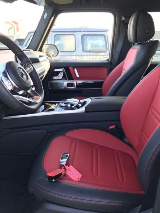 奔驰G500的空间宽大,后排座三个人绰绰有余,而且绝对不会顶头,红色菱形格座椅显得别具一格,乘坐座椅的舒适度还是可以的。