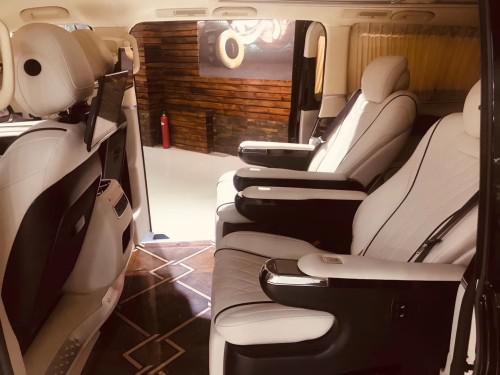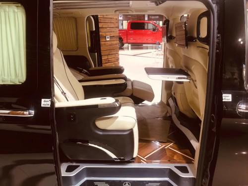 2019款进口奔驰V250商务车改装版配置:小窗侧拉窗、全车镀铬套件、V-class (配置|询价)大灯和尾灯、日间行车灯、顶部行李架、实木高光装饰件+涡轮出风口、全车内饰镀铬装饰套件、四门奔驰原厂门提、全车内饰真皮包覆、曲面九宫格顶灯、奔驰原厂分体休息脚踏、四门镜面迈巴赫迎宾踏板、咖啡真皮仪表台、手动窗帘、进口翻毛绒顶棚、进口纯羊毛地毯、行政会议桌、12.1英寸后排头枕娱乐屏、前排奔驰原厂扶手加12L温控冰箱、前排电动座椅手改电带通风加热、迈巴赫旋转电动航空座椅奔驰原厂开关、第三排180°电动沙发床奔驰原厂开关、后排折叠小桌板、倒车影像。