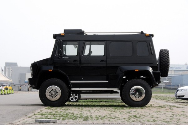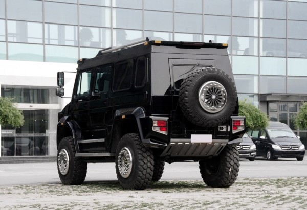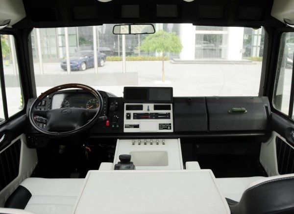 外观设计:乌尼莫克U5000整部车的中网采用了三条银色的装饰条组成,中间的奔驰LOGO显得格外的亮眼,或许只有这个方面能让我们看出这是部奔驰车了!两侧的大灯采用了竖排的LED光源并且为了腾出更多的中网,镶嵌的位置也更加靠两侧!两只炮眼式的尾灯还是非常的霸气!尺寸上它的长宽高分别为5300mm/2350mm/2850mm,轴距达到了3250mm。超高的离地间距使得登上这款车犹如上了两个台阶!