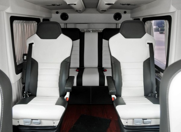 内饰设计:相比于当下的豪华越野车,乌尼莫克U5000 SUV的前排确实有点老旧,但后排的豪华感还是很上档次的,座椅按照2+2+3布局,前两排的座椅都是独立的,且座椅都是采用气动悬架,能够大大提高乘客的舒适度,中间还留有比较宽敞的过道,地板都是上等木质板,另外还特意给后排安置了一个悬挂的显示屏,在越野之余也能得到不一样的娱乐放松。