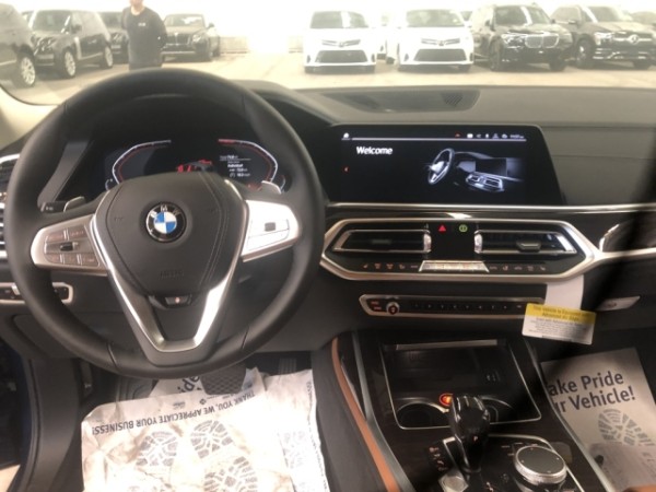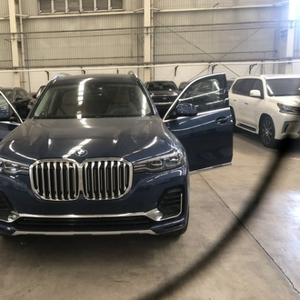 19款美规宝马X7 3.0T 7融入最新家族式设计元素,内饰大部分区域由银色饰条及木质面板加以点缀,配备带有注意力监测的液晶仪表盘及全新的三辐式多功能方向盘,中控区域为悬浮式触控显示屏,下方为空调出风口与实体功能按键,杯架处还加入可为饮品制冷或加热的功能,换装全新的水晶电子档把。除此之外,新车还配备了Vernasca皮革内饰,四区气候控制系统及三段式全景天窗。