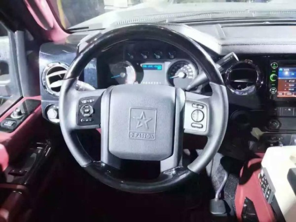 乔治巴顿内饰方面:经过高档双色真皮重新包裹,搭配木纹饰板点缀,使得原本就宽敞霸气的内饰更显豪华。细节方面,乔治巴顿车身侧面延续了粗犷的设计风格,外跑的轮眉、见棱见角的车门以及其本身超长的轴距尺寸,看上去就不是好惹的。