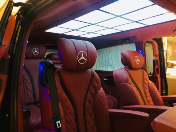 19款奔驰威霆 (配置|询价)进口奔驰维特斯商务车4座,隐藏6座,7座,当我们坐在这款进口航空头等舱座椅上,赏识着32寸液晶电视带来的画面作用、配合着车内加拿大进口虎斑檀木材质的包裹内饰,隐藏酒柜,隐藏保险柜,电动储藏柜,日本进口健伍音响,迈巴赫九宫格顶灯。以及车载五颜六色的灯光效应,很好的给我们营建了家庭影院的享受,在奢华吧台下的液晶显示屏可以用来一键控制车内的灯光、后仓电动窗帘、电视机的升降、空气进化器的开/关等。