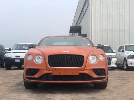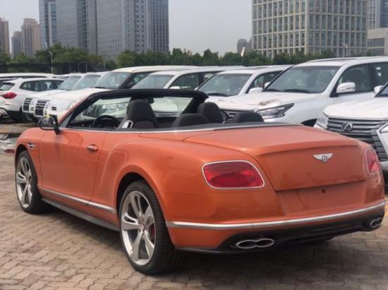 18款宾利欧陆敞篷GTCS,颜色:魅力橙/海豚灰配黑内饰/黑顶棚状态:现车手续齐配置:21轮,对比刺绣,方向盘手工对比色刺绣,穆勒包配定向运动轮,四季包,亮黑色涂装外后视镜,碳纤维装饰面板,可拆卸中控台储物盒,前座椅通风按摩,挡风片,ACC巡航系统,CD播放器,4G无线热点,备用胎,运动排气等