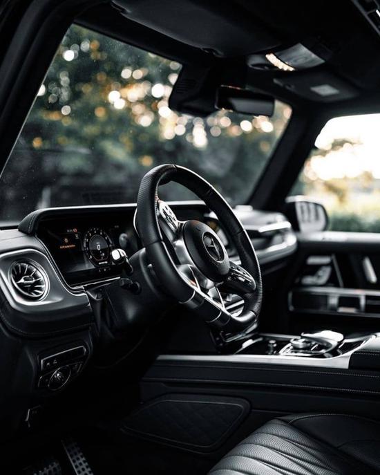 2019款全新G63内饰方面,新G63保留了新G500的整体设计,除配色差异外,新车还换装了全新造型的平底式AMG运动方向盘,其两侧配以打孔皮 质包裹,下部镀铬装饰的造型也与新G 500明显不同,看上去十分战斗。此外,全液晶仪表盘 中控大屏的双12.3英寸屏幕设计在新车上也没有缺席,营造出了浓郁的科技感。