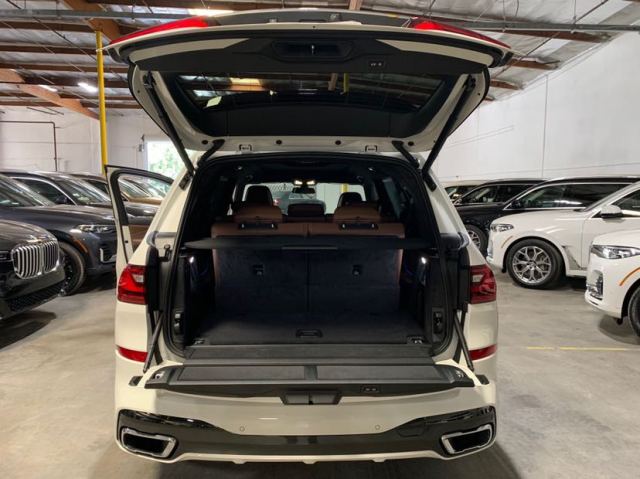 19款宝马X7的尾部后备箱采用上下对开的开门方式,贯穿式的尾灯配合一整根镀铬装饰条,符合当下的潮流,车尾部的线条设计也非常丰富,排气采用了双边单出的设计,处处都彰显着大气两个字。