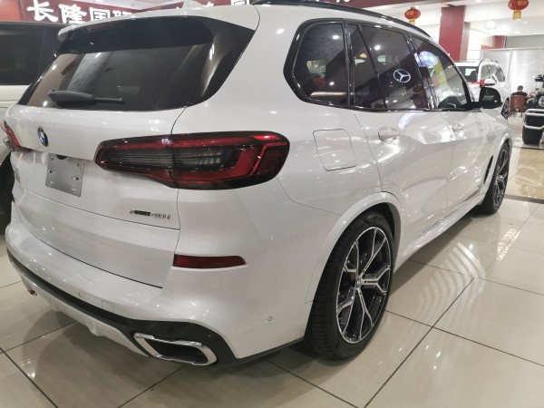 2019款新一代宝马X5尾部造型立体感更强,采用悬浮式车顶设计,还配备了鲨鱼鳍天线,尾灯采用双红色灯带设计,采用双边单出排气管设计,后保险杠采用白色包裹,设计感更好。配备LED尾灯。配备22英寸铝合金轮毂,采用双辐式设计。