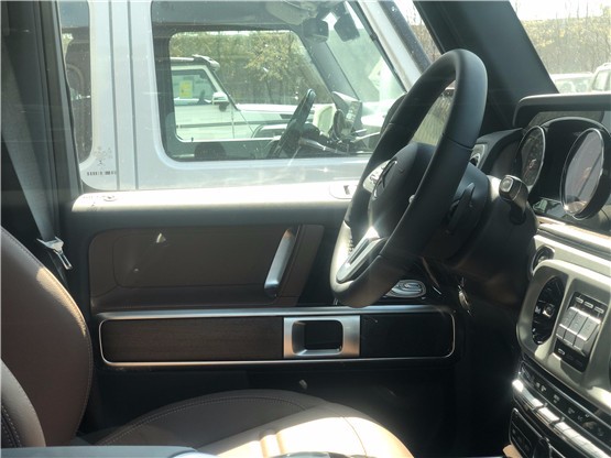 内饰方面: 从内饰来看,新款奔驰G500级也进行了彻底的改造,这给了它与其他奔驰系列的豪车分庭抗礼的资格。较之于现款车型,它的内饰发生了巨大的变化,融入了不少现款奔驰S级 (配置|询价)、E级的设计元素,从而变得更加豪华,而家族式的连屏设计则凸显了车内的科技感。当然了,经典的“三把锁”按键自然不会缺失,并且设置在中控台最为显眼的位置。
