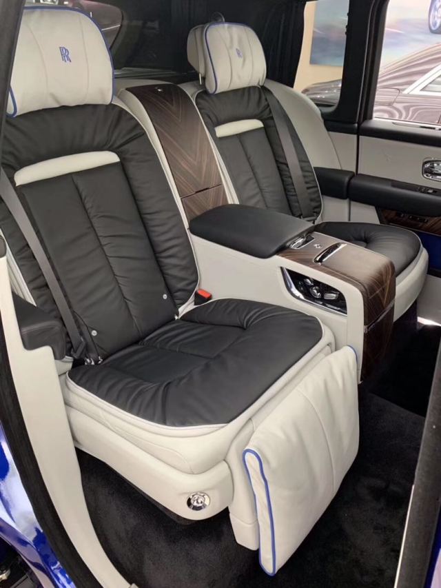 相比外观的传统,内饰上库里南除了给人华贵外,还植入更多新鲜感,首先大量木纹设计和皮革奠定了新车的豪华感,其次全新液晶显示屏和数字化中控面板又悄无声息的告诉人们它在与时俱进。前排设计,体现出了非常好的逻辑性和整洁性,从上到下都有很好的层次感,线性的前台,然后是一体化横置的仪表,中控屏,饰板。再下一层是由一整块木板水平对开整合的木纹饰板和空调,据劳斯莱斯介绍,每辆库里南车上的木纹饰板都是完全不同的,采用唯一的纹理,一辆车便是一棵树。