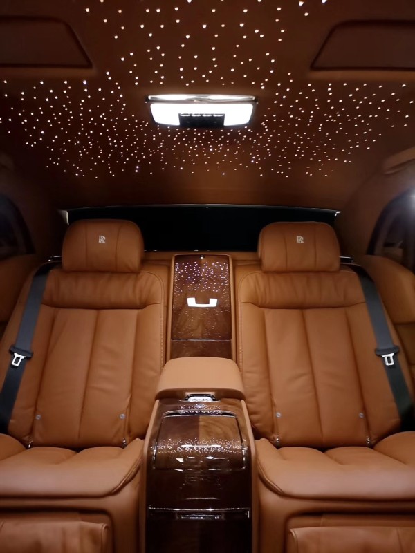 2019款劳斯莱斯全新幻影电动折叠板和后排影院系统被巧妙的隐藏在前排座椅的椅背后,只需轻触按钮,便可以自如收放桌板和影院系统,带来完美的剧院体验。后排中央固定扶手做了重点优化,其中国可容纳带有威士忌酒具的酒柜、香槟酒具和冷藏箱,方便乘客畅快交谈,后排座椅角度可以任意调节,这一设计让客户无需转头便可视线自如交流。举世闻名的星光饰顶抬头可见,整个车厢内饰全部以最精美的高档材料装饰,使车内极具触感。