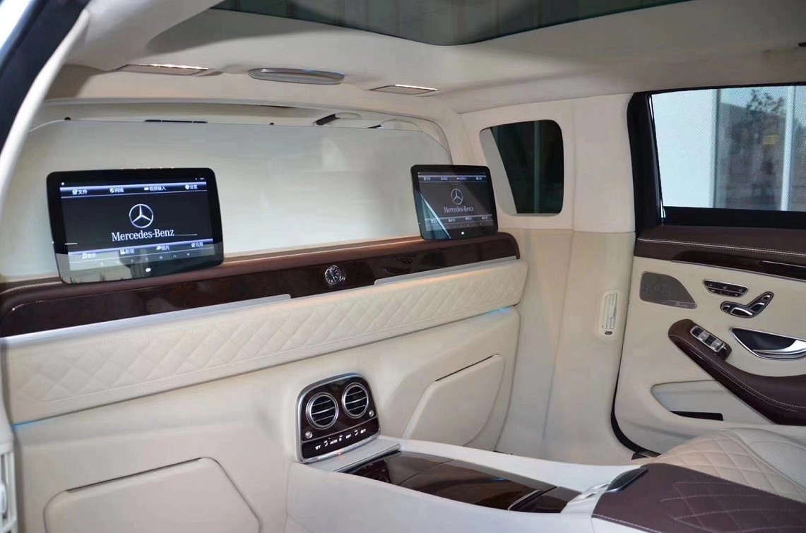 2019款加长奔驰迈巴赫S级 (配置|询价)轿车,奔驰普尔曼S560和450车身长度5.98米,奔驰S级 (配置|询价)别加长的车型豪华程度可见,商界大佬们的身份象征座驾,属于私人定制版,