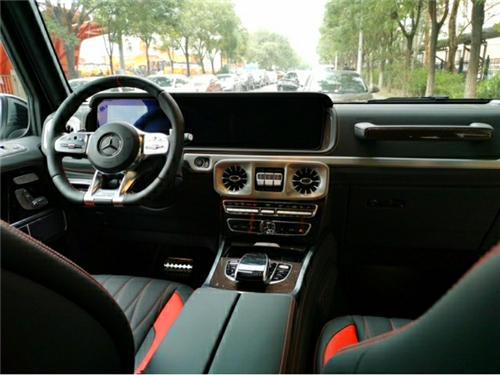 19款奔驰G63采用了奔驰最新的双屏幕式设计,全液晶仪表盘和中控台屏幕都达到12.3英寸。同时内饰质感和工艺都有了很大的进步。较之于现款车型,它的内饰发生了巨大的变化,融入了不少现款奔驰S级 (配置|询价)、E级的设计元素,从而变得更加豪华,而家族式的连屏设计则凸显了车内的科技感。