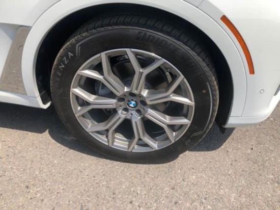 19款宝马X7不仅延续了宝马家族式的设计,也添加了不少全新的设计,车头宽大厚重,前脸标志性双肾型进气格栅做了加大处理,直瀑瀑型中网周围包裹宽大的饰条,不仅辨识度高攻击力也是非常强的,两侧连接大灯组,外观做了开眼角处理,上下两条LED日间行驶灯做了上下眼眉,两组大型的远光灯被箭头式造型勾勒,下面的进气口采用大嘴式设计嘴角连接L型雾灯区,有种嘴角上翘的而感觉,远远望去非常有威严。