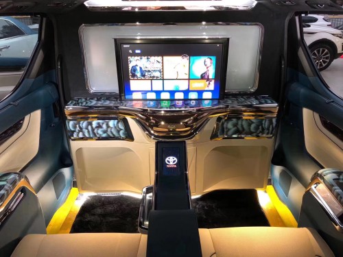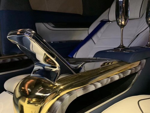 隔屏部分:采用日式双金工艺让天鹅形态栩栩如生,由工艺大师手绘的羽毛图案,深藏于内的黑科技,奢华并展露着尊贵。日式丰田私定石英表记录了流逝的时间。可雾化调节升降玻璃实现的后排独立舱的私密性质。后排娱乐24寸可升降超清4k电视搭载原车JBL音响打造出专属后排的家庭影院。全新式设计天鹅绒脚踏和航空铝制酒柜,共谈商业大事而随着起泡酒开瓶声而落下帷幕。