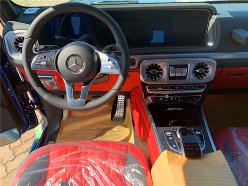 19款奔驰G500内饰豪华气派,卓越的品质和精致的工艺在车内体现得淋漓尽致,对细节的精益求精是内饰设计中的重要原则。车内采用深色调与桃木装饰,黑色真皮运动座椅非常舒适,方向盘以高档真皮包裹装饰,触感极其细腻。配有桃木装饰的操控台,稳重大气,同时提高了整体的质感。各种功能按钮应有尽有,丝毫不次于豪华轿车的功能。 内饰焕然一新,虽然还是以平直的线条为主,但完全没 了上一代车型那种粗糙的感觉了,用料和做工都能令人满意。跟奔驰的很多其他车型一样,它也用上了双12.3英寸屏幕,科技感很强。