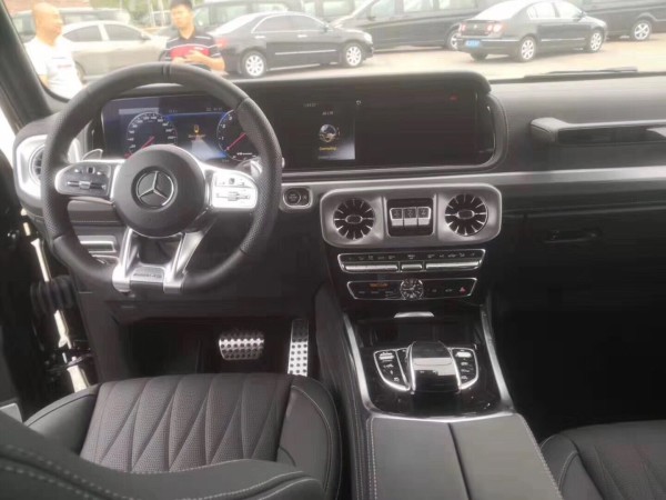 2019款全新G63内饰方面,新G63保留了新G500的整体设计,除配色差异外,新车还换装了全新造型的平底式AMG运动方向盘,其两侧配以打孔皮质包裹,下部镀铬装饰的造型也与新G 500明显不同,看上去十分战斗。此外,全液晶仪表盘+中控大屏的双12.3英寸屏幕设计在新车上也没有缺席,营造出了浓郁的科技感。